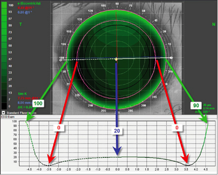 Topografski aparati imaju softversku simulaciju fluresceinskog bojenja koje lekaru omogućava da napiše idealno sočivo čuvajući zdravlje rožnjače i postižući maksimalnu oštrinu vida.